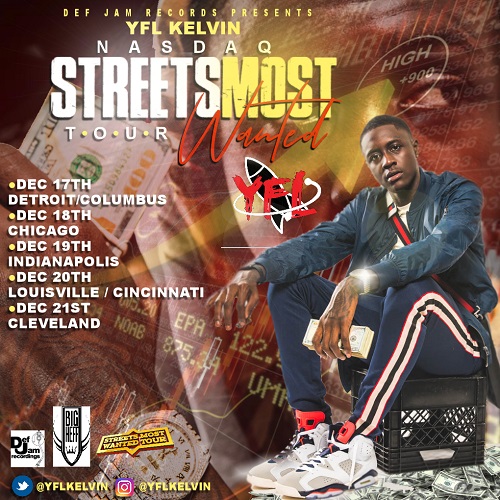 Def Jam Records has a new emerging star in Yfl Kelvin. The Cleveland native began to catch a buzz in 2018 with his single “Nasdaq” quickly becoming a hit in the high schools. Just dropping his debut mixtape “Outta Here” on the label. Be sure to look out for YFL this spring touring with label mate YK Osiris on the Rookie Of The Year Tour. YFL Kelvin has been busy promoting his single “Nasdaq” Feat Moneybag Yo on tour with Big Heff in the midwest. On tour he released the video for his second single off the mixtape Top Notch on Worldstar.